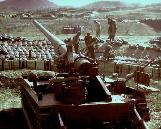 Our old crusty maintenance warrant and motor sergeant (Chief Tidwell and Sgt. Smallwood) built a maintenance shop that could handle three guns and had maintenance pits. The 8/4th Arty did not lack in repair skills either. The battalion maintenance section was knowledgeable and skilled to refurbish an 8" or 175mm minus the mount and fuel injectors. With two wreckers the Battalion maintenance team could pull and replace a tube and cannon in 15 to 18 minutes which was 30% faster than was the best time of the maintenance detachment whose function was tube/cannon assembly replacement. Even the fuel injectors were not a problem, we had a cooperative/bartering agreement with the Marines and Sea Bees.
