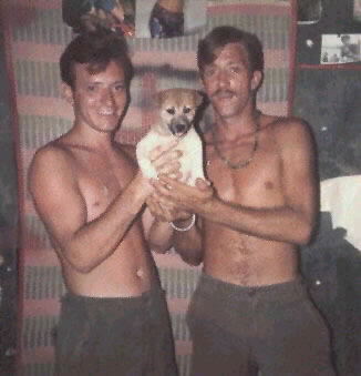 The dog was mine and I named her after our surroundings, "Ghetto. " When we had bad days she always seemed to make things better. But I lost her to a mortar attack. The picture was taken down in my bunker at C-2, that maybe some of you guys took over after I left at the end of 70. |